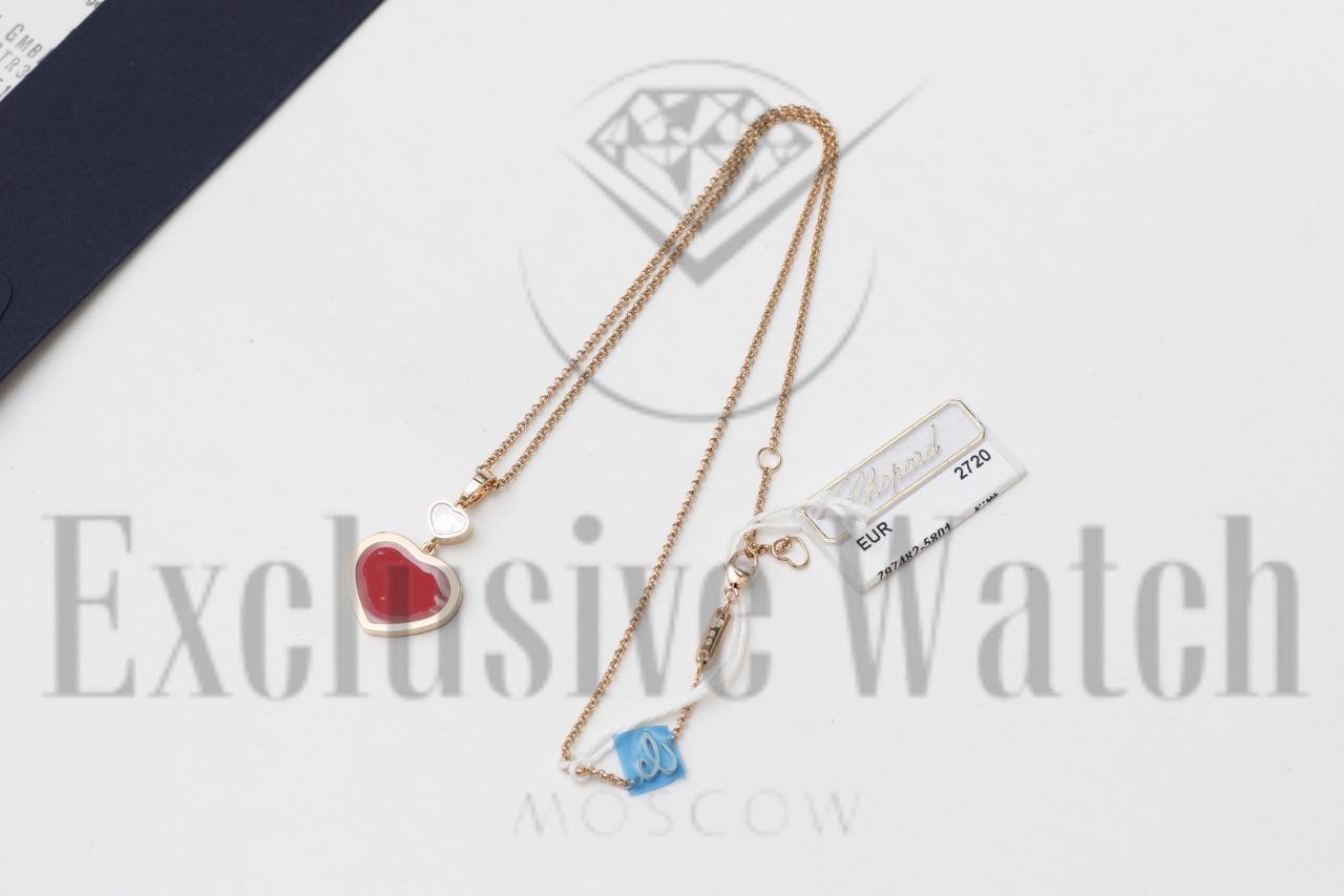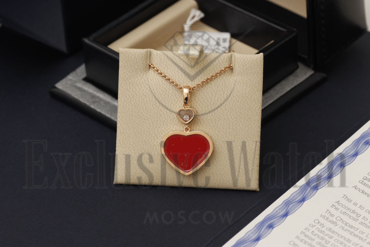 Кулон Chopard Happy Diamonds Happy Hearts с плавающиим бриллиантом и вставкой красного цвета.