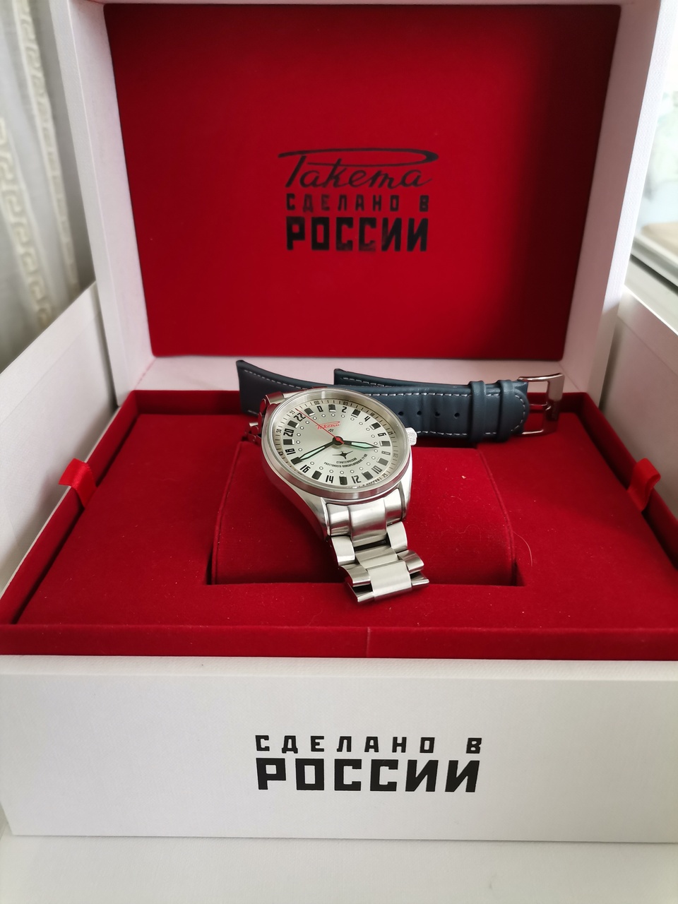 В комплекте фирменный кожанный ремешок. Доплата за фирменный браслет +5000р. Часы обслуживались в этом году, замена узла баланса.