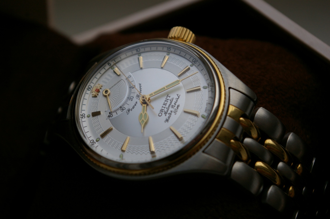 Я решил сделать себе подарок к 30-тилетию. Искал часы долго, мучительно, перебирая различные варианты. Меняя предпочтения, надоедая вопросами вам, форумчанам. И вот однажды в одной из тем я увидел зеленого Альпиниста от Сейко. Мне сразу понравилась эта модель: ее лаконичные формы, стрелочки винтажные. Но изучив вопрос и поняв, что их цена для меня не приподъемна, я подумал, что эти часы не для меня. И тут я вспомнил, что однажды скачал каталог коллекции Neo Classical Elegance от Ориент, отсканированный уважаемым AlexSan^ом. На картинках эти часы мне очень напомнили Альпиниста. Но я понимал, что это все-таки разные стили. Тем не менее, часы от Ориента мне приглянулись. Но меня ждало разочарование - оказалось, что эта коллекция снята с производства около 10-ти лет назад. Я поинтересовался на форуме - нет ли у кого ссылок на продажи этих часов, или может у кого-то есть желание их продать. Akopovich порекомендовал мне обратиться к Andy65, мол он совсем недавно продавал. Как выяснилось, продал. Но он обещал мне попытаться найти еще. Да я и сам не собирался сидеть на месте. Писал в Японию в Ориент, писал в Малайзию, представителю магазина, в котором эта модель значилась (но на деле оказалось, что они ее давно продали), Сейе, Хигучи. Все без толку. И вот однажды, когда я совсем было отчаялся и уже создал тему по поиску новых часов, вдруг выскочило личное сообщение от drill. Он писал, что в одном часовом магазине нашел искомые мною часы. У меня клавиатура выпала из рук. И пошло поехало, бесконечные переписки, беспокойство, ожидание. И вот они у меня. Я хотел, правда, в стали без позолоты, но в данном случае выбирать не приходится. И эти часы мне нравятся безумно. Итак, они примерно 37 мм в диаметре вместе с заводной головкой. Циферблат то ли перламутровый, то ли "под металл". Мелких деталей множество, но время считывается легко и быстро. Нет ни дня недели, ни даты, только индикатор запаса хода и две стрелки. Маятник автоподзавода - с покрытием. Часы довольно толстые, но изящные. На руку легли без проблем, размер классический. Браслет литой из стали. Съемные звенья на маленьких болтиках. Попытался установить точность хода. В первый день, как завел, убежали, причем довольно прилично, как мне показалось, на 1 минуту. Но завел я их не полностью, только ровно на сутки. Сегодня на все 40 часов завел. Посмотрим, что будет. Хотя, чтобы ни было - мне они все равно нравятся. Простите, что написал очень много. Просто хотелось поделиться чувствами и поблагодарить хороших людей.
