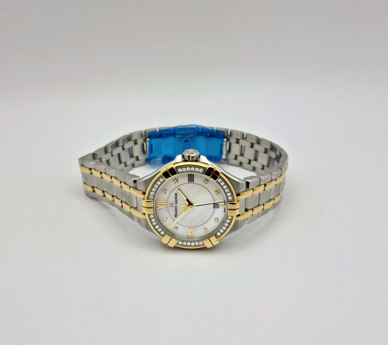 Циферблат: Нежно-голубой перламутровый циферблат с бриллиантовыми метками