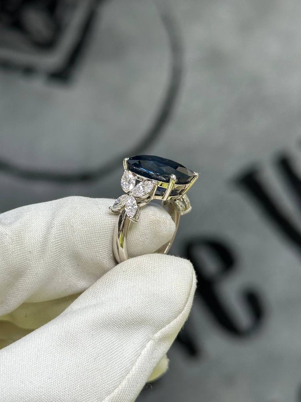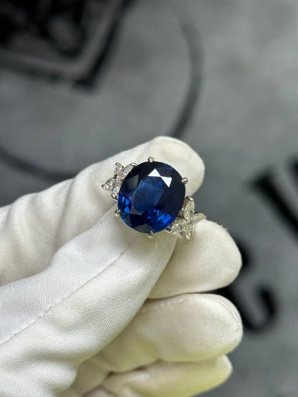 КОЛЬЦО С САПФИРОМ 11.05 КАРАТ И БРИЛЛИАНТАМИ