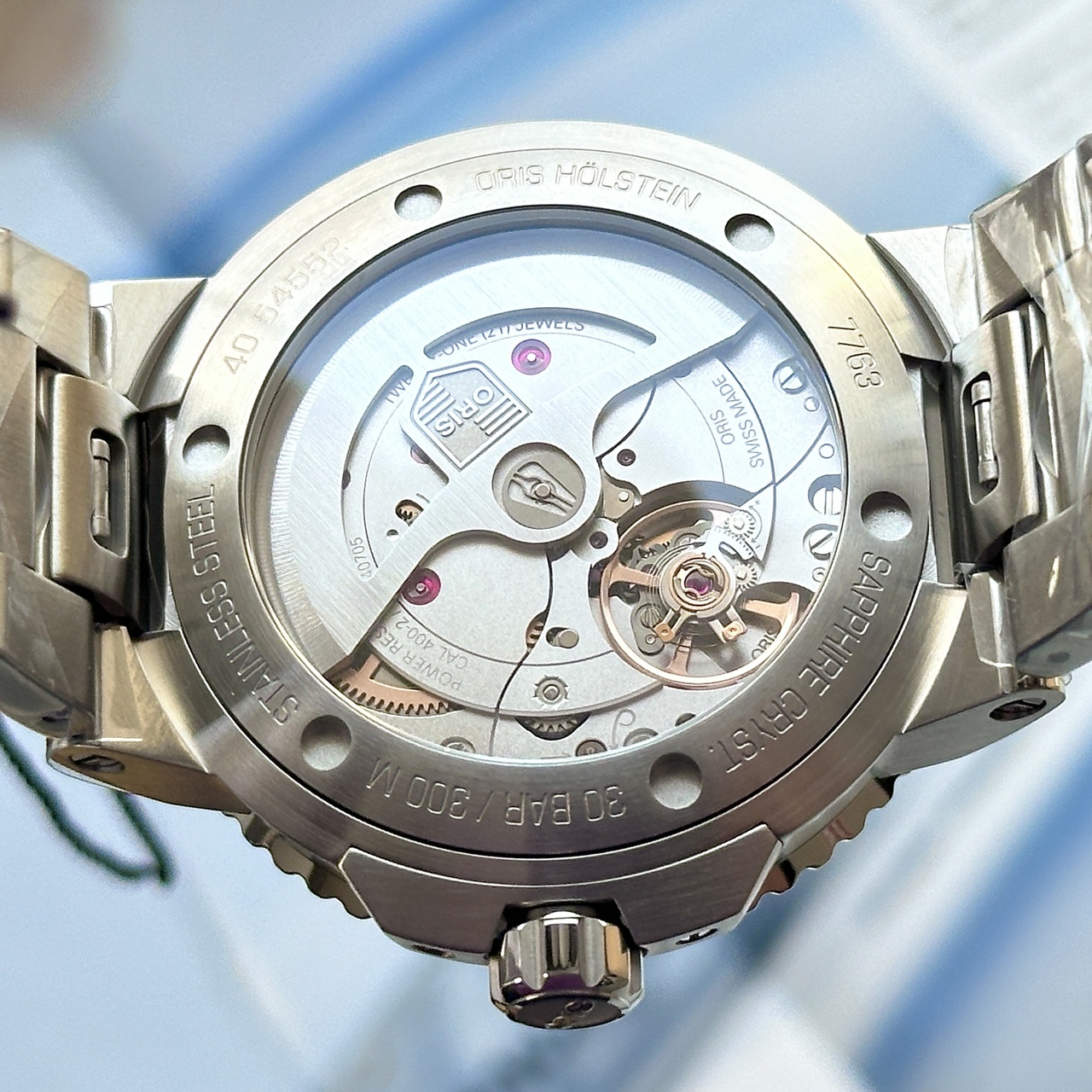 Красавец из флагманской линейки Акуис от мануфактуры из Хёльштайна, с красивым зеленым циферблатом, на калибре Oris 400 - с пятидневным запасом хода. Новинка 2023 года. Крупный размер 43,5 mm, не путайте с более мелкими версиями. 100% eye-stopper. Абсолютно новые, в пленках, полный комплект. Куплены в Штатах.