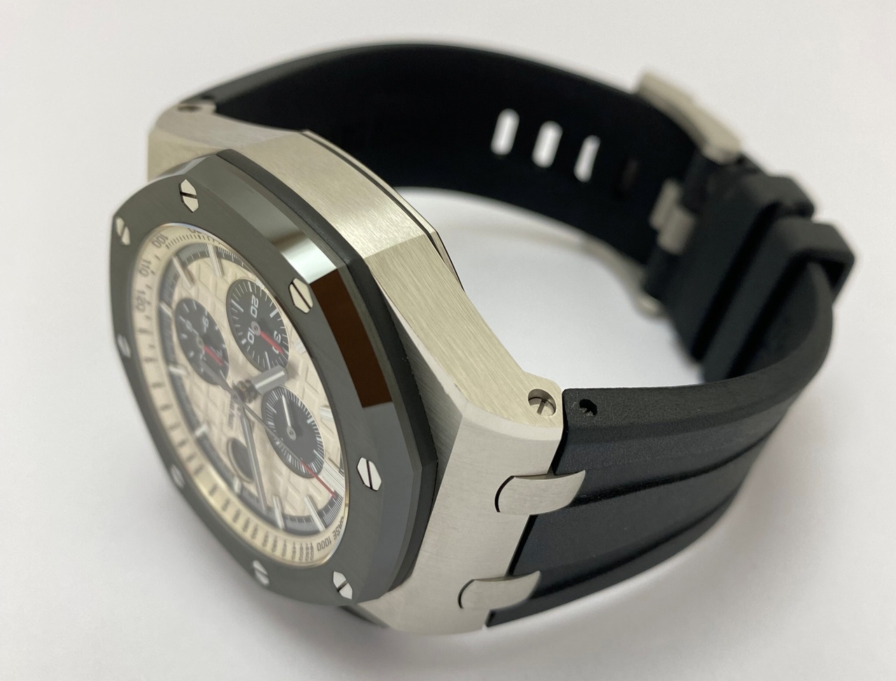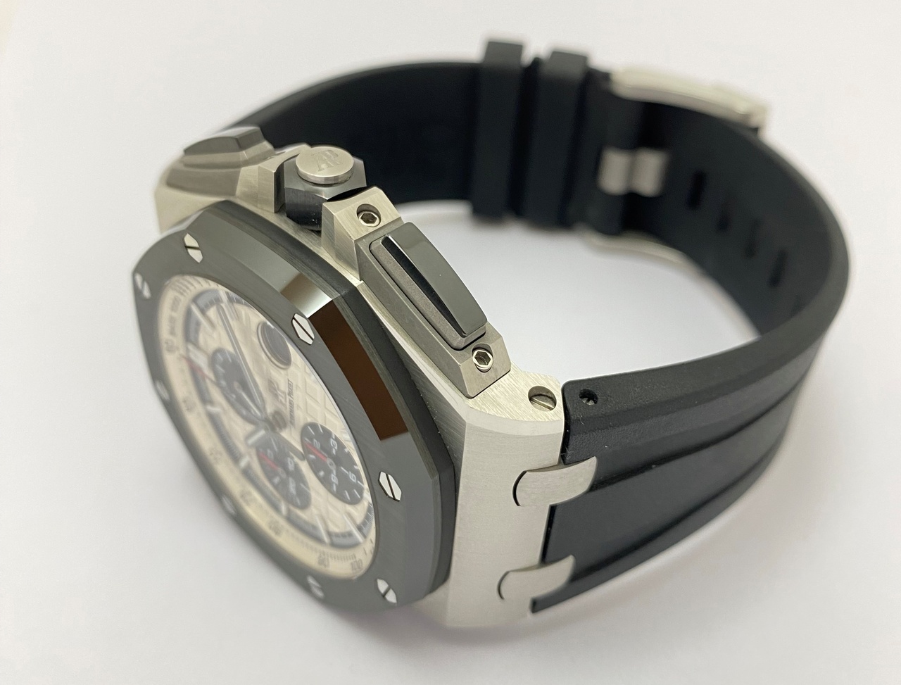 Audemars Piguet Royal Oak Offshore Chronograph 44mm (сталь/керамика, светлый циферблат, черный каучук)