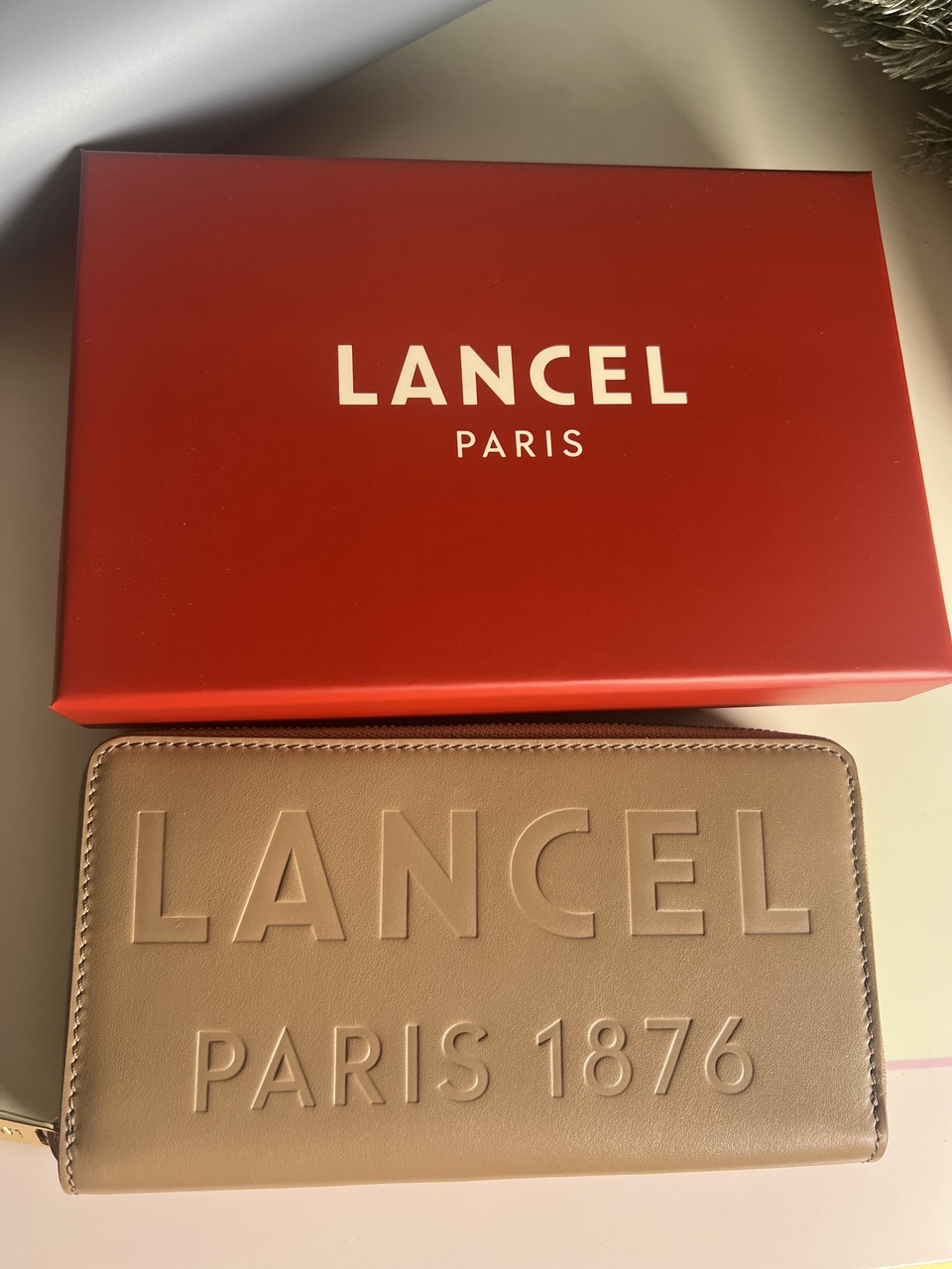 LANCEL PARIS - классический бежевый женский кошелек из шикарной гладкой кожи