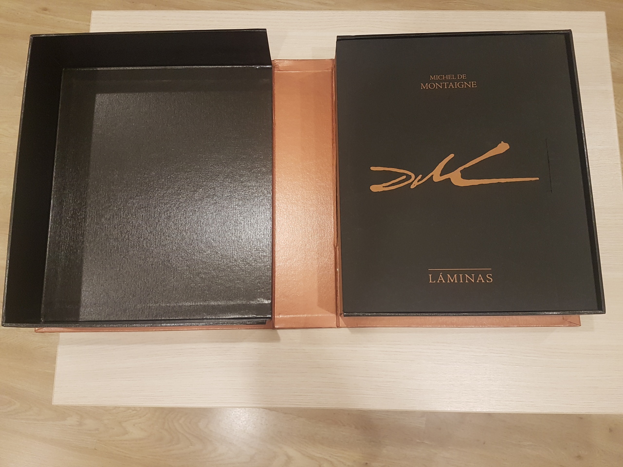Уникальная и неповторимая работа, выпущенная ограниченным тиражом до 3000 экземпляров. Пронумерованы, согласно нотариальному акту, от I до X, первая десятка, и от 1 до 2990, следующие. Книга содержит 21 очерк Мишеля де Монтень, выбранный Сальвадором Дали и проиллюстрированный между 1946 и 1948 годами.