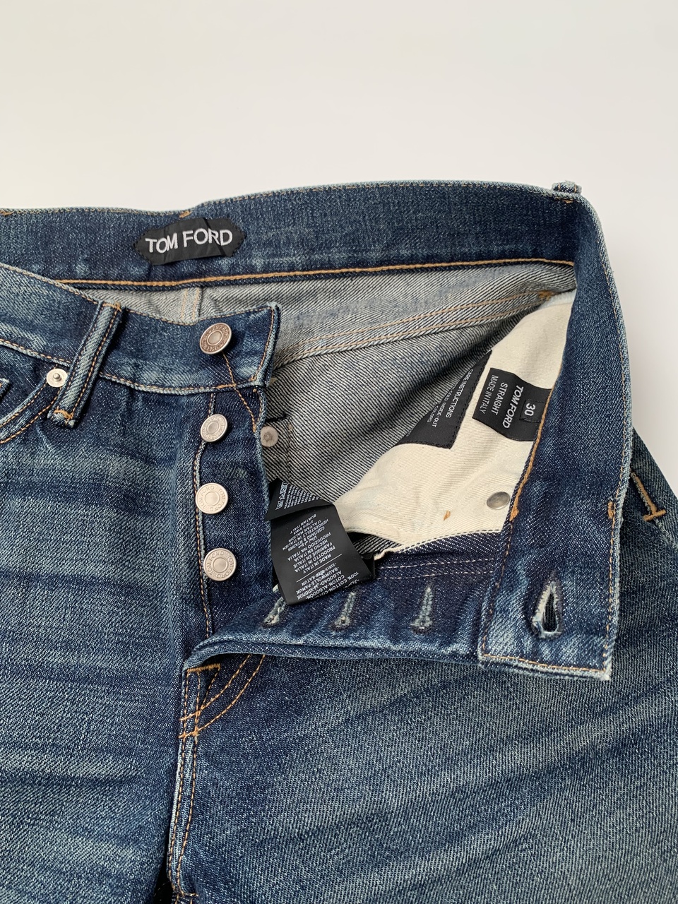 TOM FORD новые мужские джинсы классического прямого кроя синего цвета с потёртостями SELVEDGE DENIM (30 size)