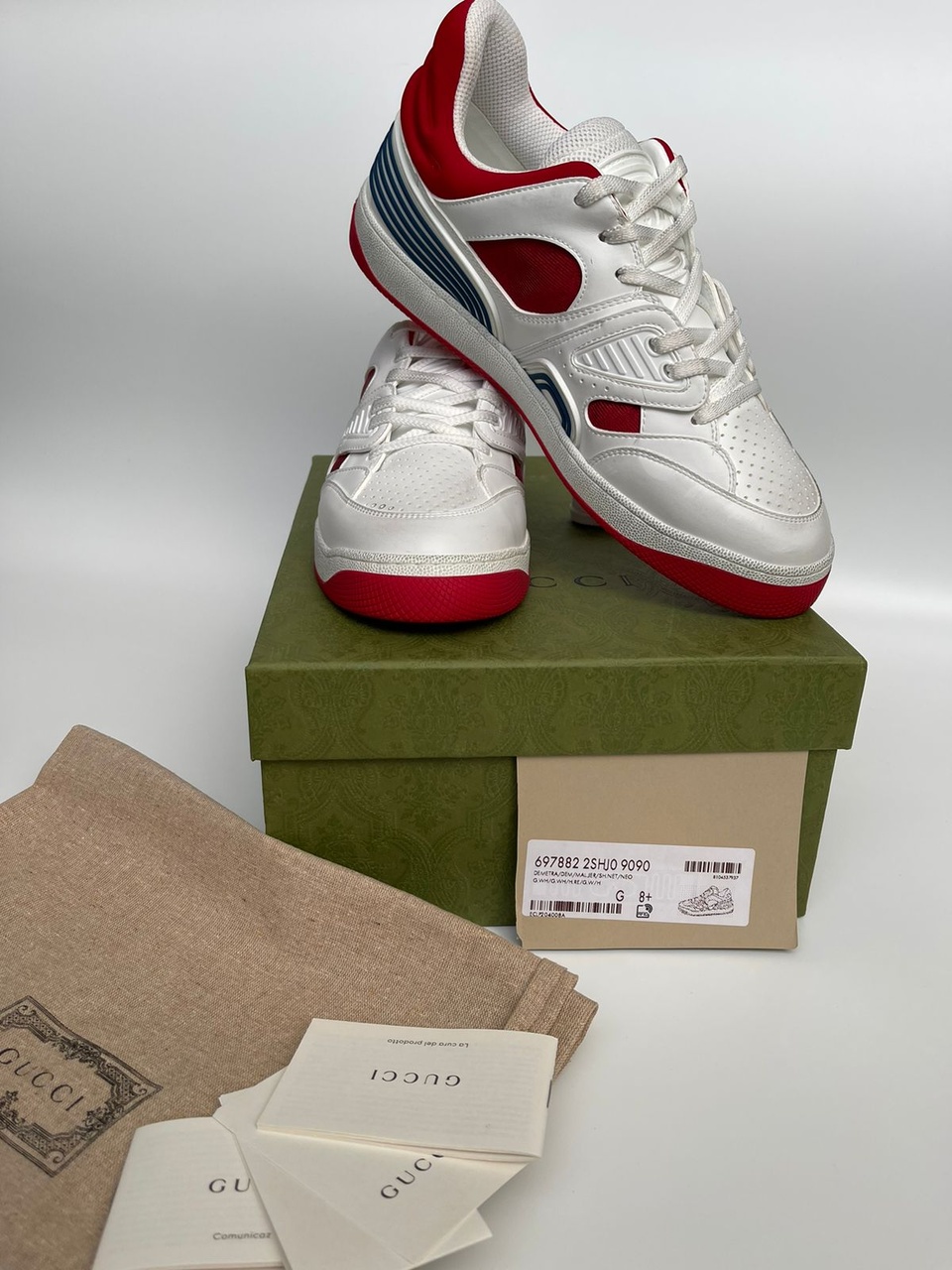 GUCCI новые мужские кеды / цвет белый-красный/(8,5 UK/42,5 EU size)