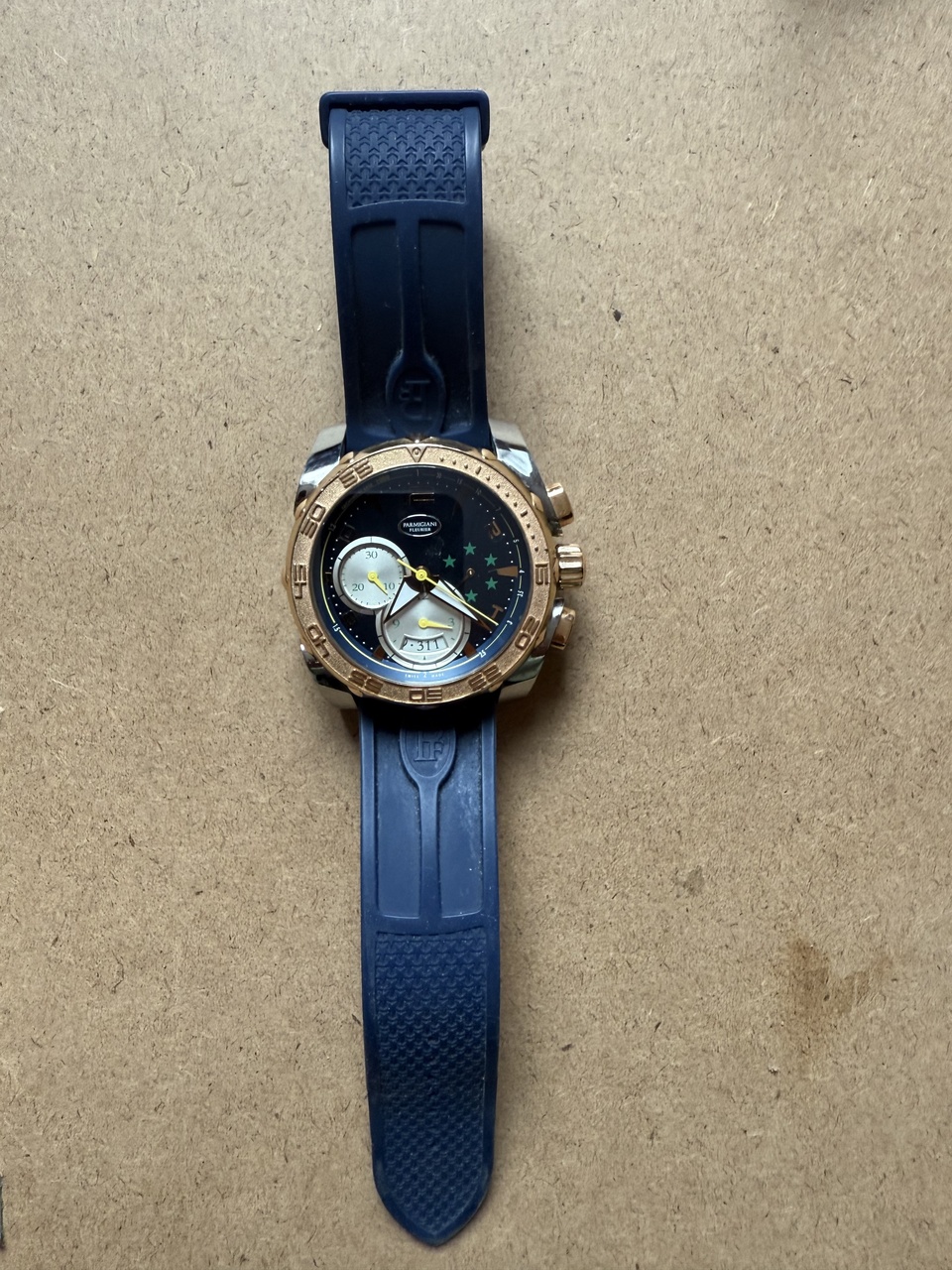 Титановый корпус и безель из 18-каратного розового золота, хронограф, тахиметр, автоматический, с датой.