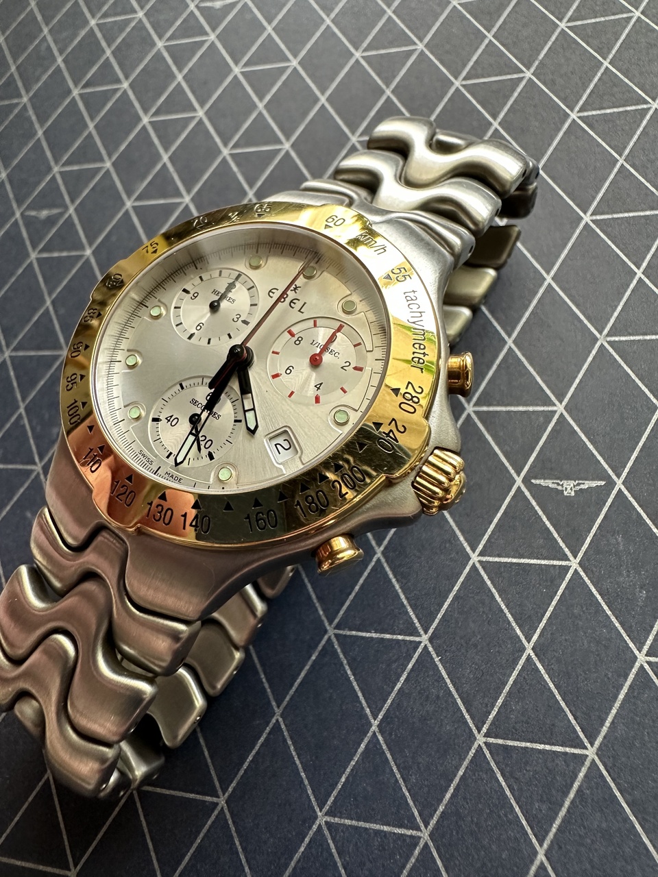 Безель часов и кнопки выполнены из золота 18К ( для понимания, вес золота в безеле порядка 11грамм)