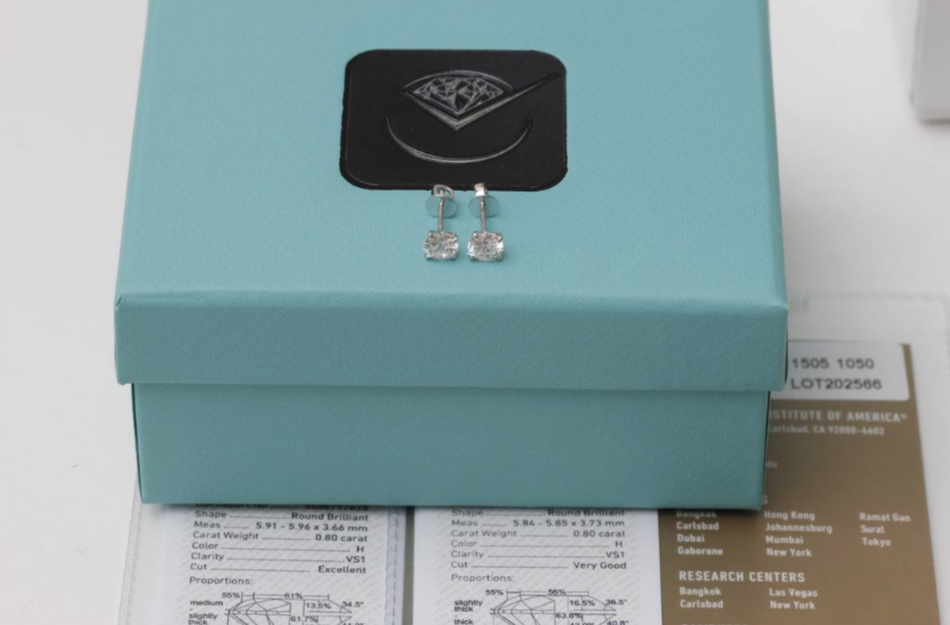 ПУСЕТЫ С ТОПОВЫМИ БРИЛЛИАНТАМИ 0.80 Ct. H/VS1 СЕРТИФИКАТ GIA