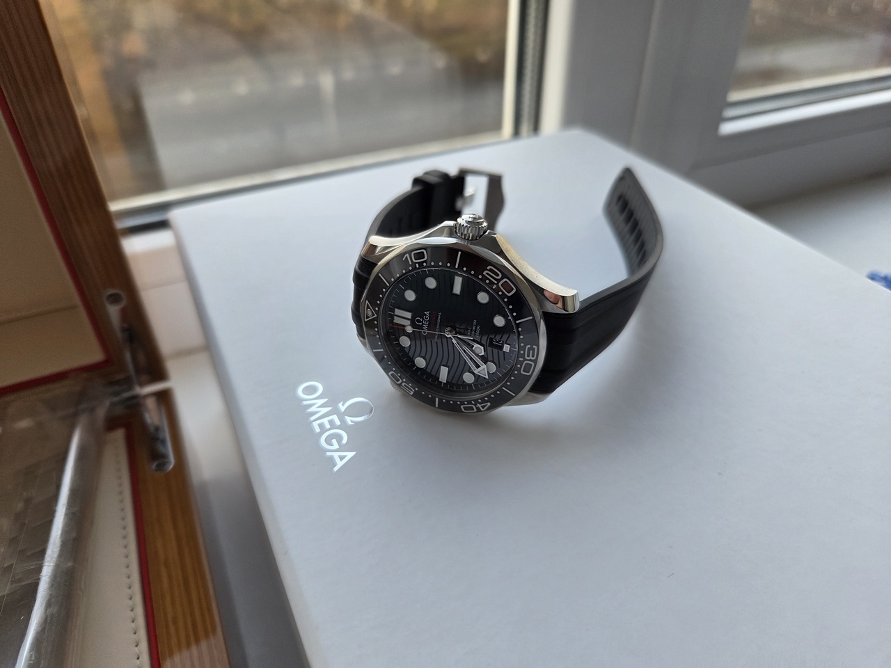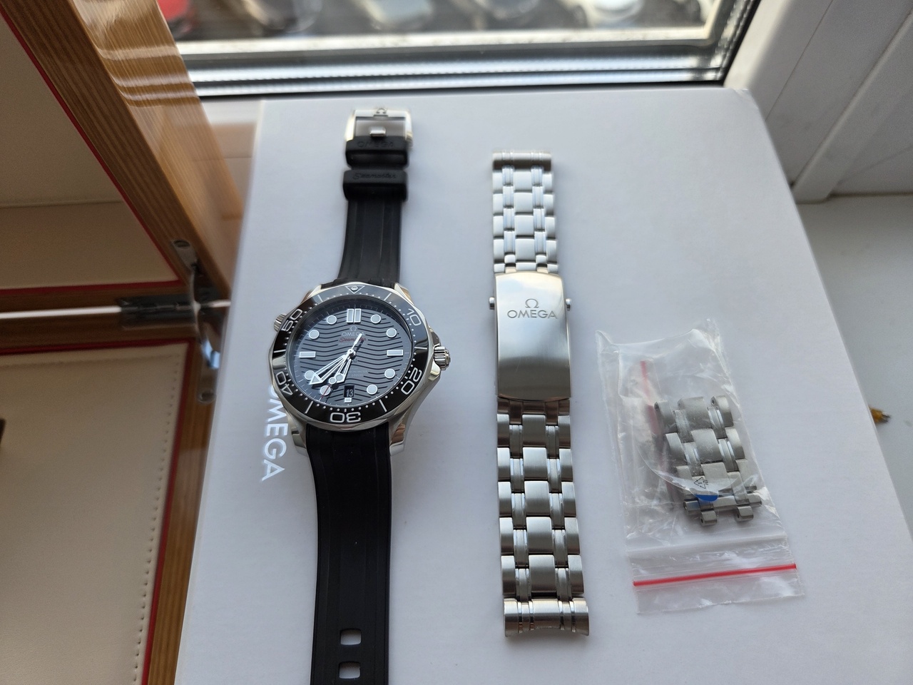 Куплены новыми в конце 2022г здесь на Маркете у известного и уважаемого продавца (в случае необходимости, думаю, он без проблем подтвердит). Где-то на второй месяц были докуплены оригинальный каучук с застежкой. После этого носились только на ремешке. Часы в идеале. Носились редко, далеко не единственные часы. Полный комплект, гарантия. Часы отличные, продаются т.к. появилась новая хотелка.