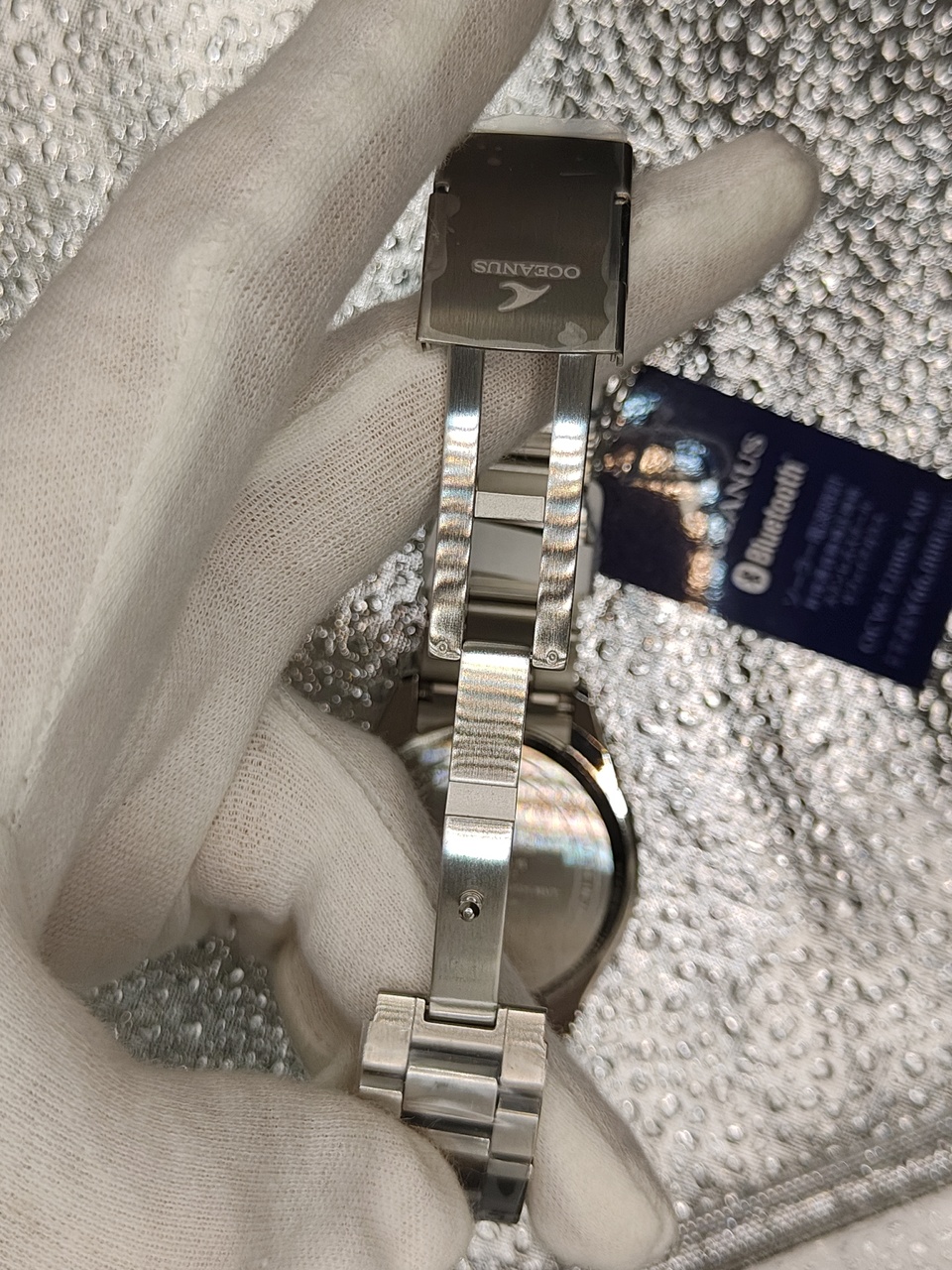 Модель весом 133 гр (на браслете), на солнечной батарее, с датой и вечным календарем, плоский сапфир, радио- и bluetooth-синхронизация
