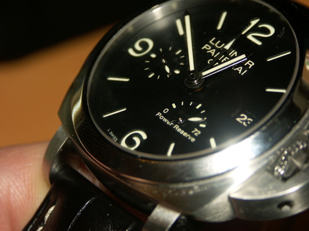 Собственно, о часах. Оказались действительно массивные, как надо, и не такие уж маленькие. GMT и резерв – на своих местах, имхо, ничего лишнего. Стеклышко сзади, стеклышко спереди. Там крутится, тут болтается. Все как надо. В общем, теперь и у меня есть Панерай.
