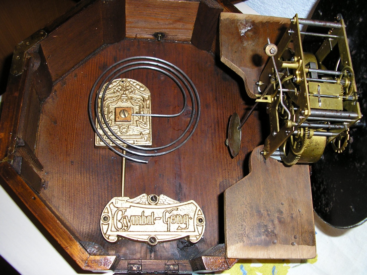 Имеется механизм и передняя часть(циферблат и деревянное обрамление , круглое , а также спиралевидное устройство для боя. Сам механизм как я понял