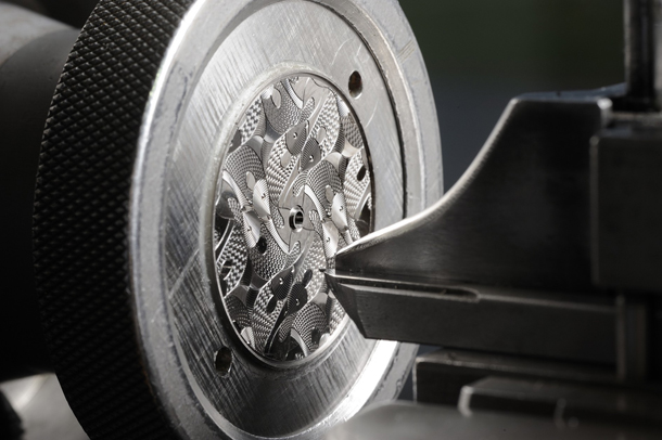 Изображение на циферблате, изготовленном с помощью гравировки и эмалевой росписи шамплеве, является репродукцией картины Маурица Корнелиса Эшера. Первым к работе приступает гравировщик, который «сухой» иглой обозначает на циферблате контуры раковин, а затем вырезает отдельные участки, создавая рельефную гравировку для последующей эмалировки по технике шамплеве.