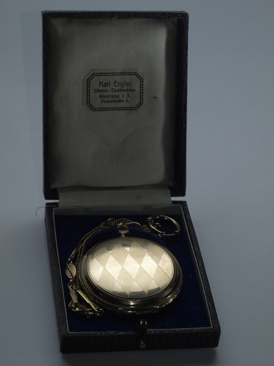 Уважаемые форумчане и коллекционеры!Предлагаю вашему вниманию очень красивые позолоченные карманные часы диаметром 50 мм(без з.г),толщина часов 10 мм (с закрытыми крышками).Часы в очень хорошем косметическом и техническом состоянии.Ход часов в среднем +15 секунд в сутки.Корпус часов произведен Louis Lang S.A. Механизм Lanco (langendorf watch Co.).Корпус позолоченный (20микрон),о чём написано на крышке с внутренней стороны(см.фото).Никаких дефектов,кроме малого количества мелких царапин на позолоте,которых совсем не видно,на корпусе,циферблате,механизме,нет.Крышки закрываются плотно.С часами продаётся позолоченная цепочка общей длиной 44 см и родная коробка,в которой эти часы продавались,с именем продавца (наверное?) или магазина.Внешнее состояние можно оценить по прилагаемым фотографиям.Если появятся вопросы пожалуйста спрашивайте.Цена 10000 р.