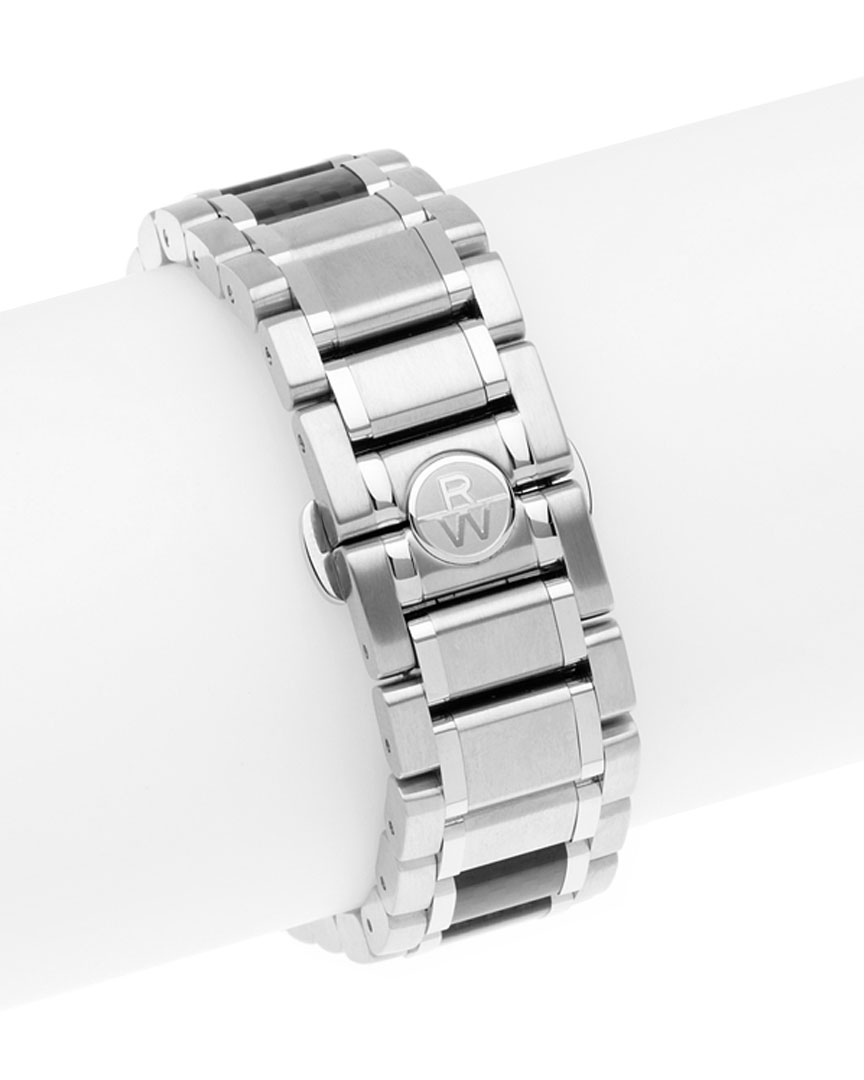 Корпус и браслет выполнены из стали с карбоновыми вставками.