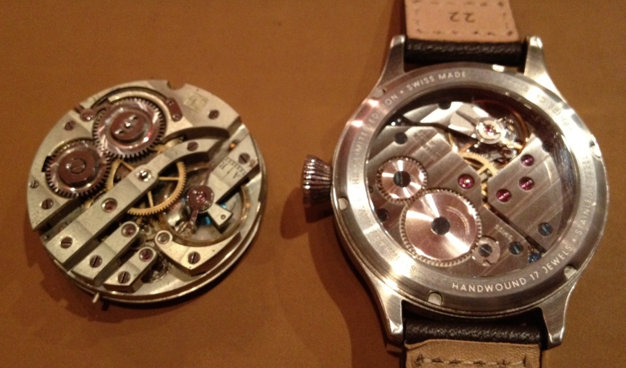 Давно лежит дома Мозер. Механизм, циферблат и стрелки в сборе. Отдельно заводная головка с ключом. Механизм похож на LeCoultre, но по-моему всё же не он. Не суть.