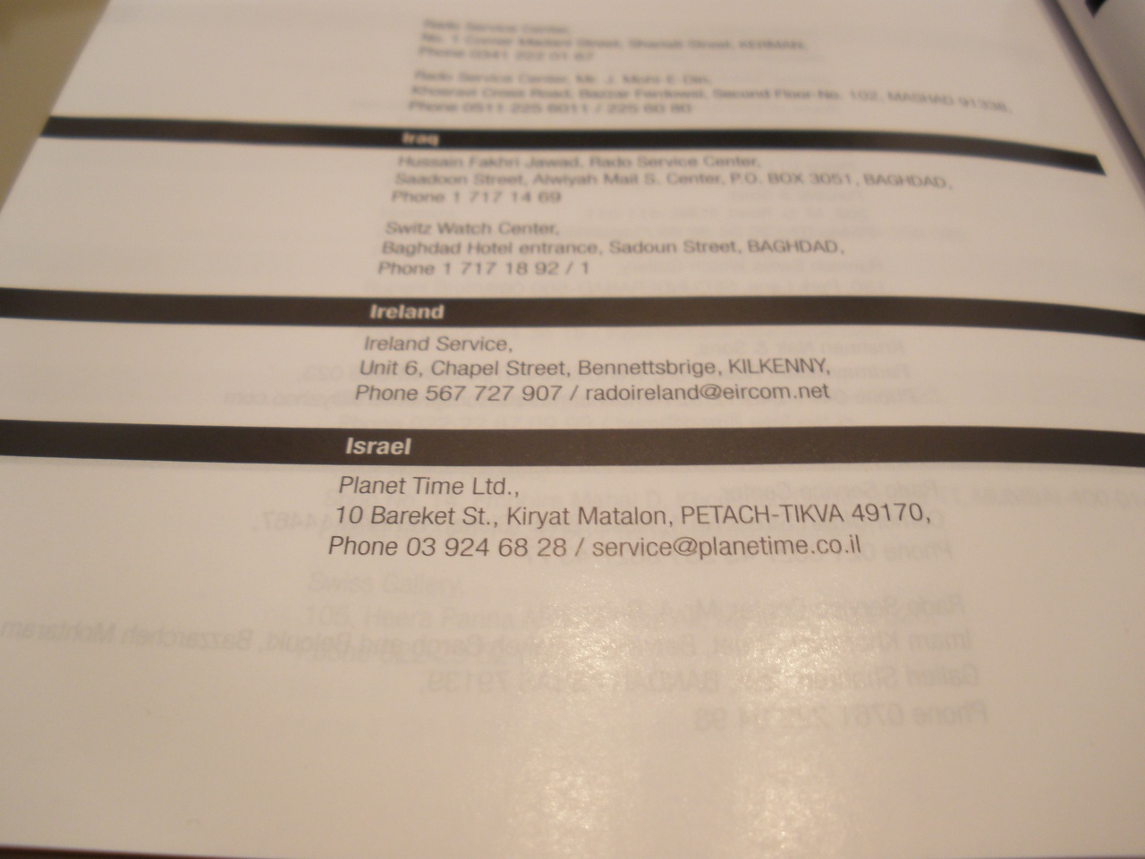 Вобщем, переговорив с женой, решили искать официального дилера в Хайфе. Дистрибьютером Радо в Израиле является фирма Планет тайм, как видно на одной из фотографий. Их представителство только в Петах-Тикве (около Тель-Авива), поэтому нашли дилера в Хайфе - в «Тахшитей ахим Наджар» тоесть у арабов.