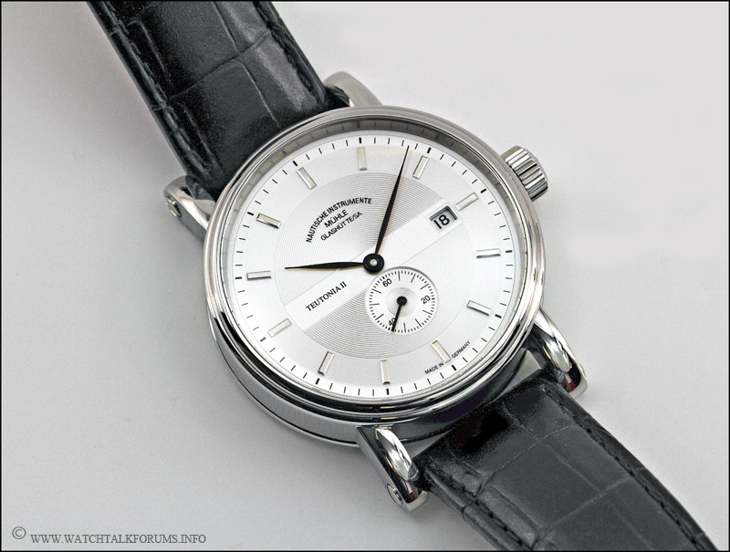 Muhle Teutonia II Kleine Sekunde. Плюсами стали: форма корпуса и размеры, отделка циферблата и механизма, наличие даты, расположение в Гласхютте (есть в этом что-то магическое для меня), минус тут только один – данные часы получаются самыми скучными ну или очень строгими (кому как).