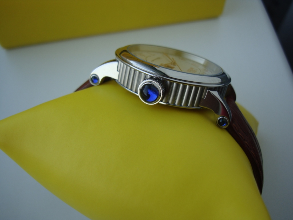 Сапфировый кабошен на заводной головке и 4 шт на ушках для ремня.