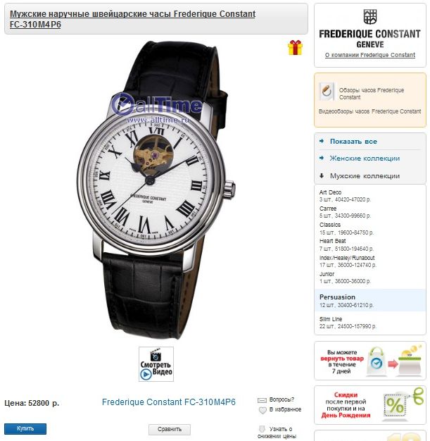 Мужские наручные швейцарские часы Frederique Constant FC-310M4P6 - Часовой форум Watch.ru