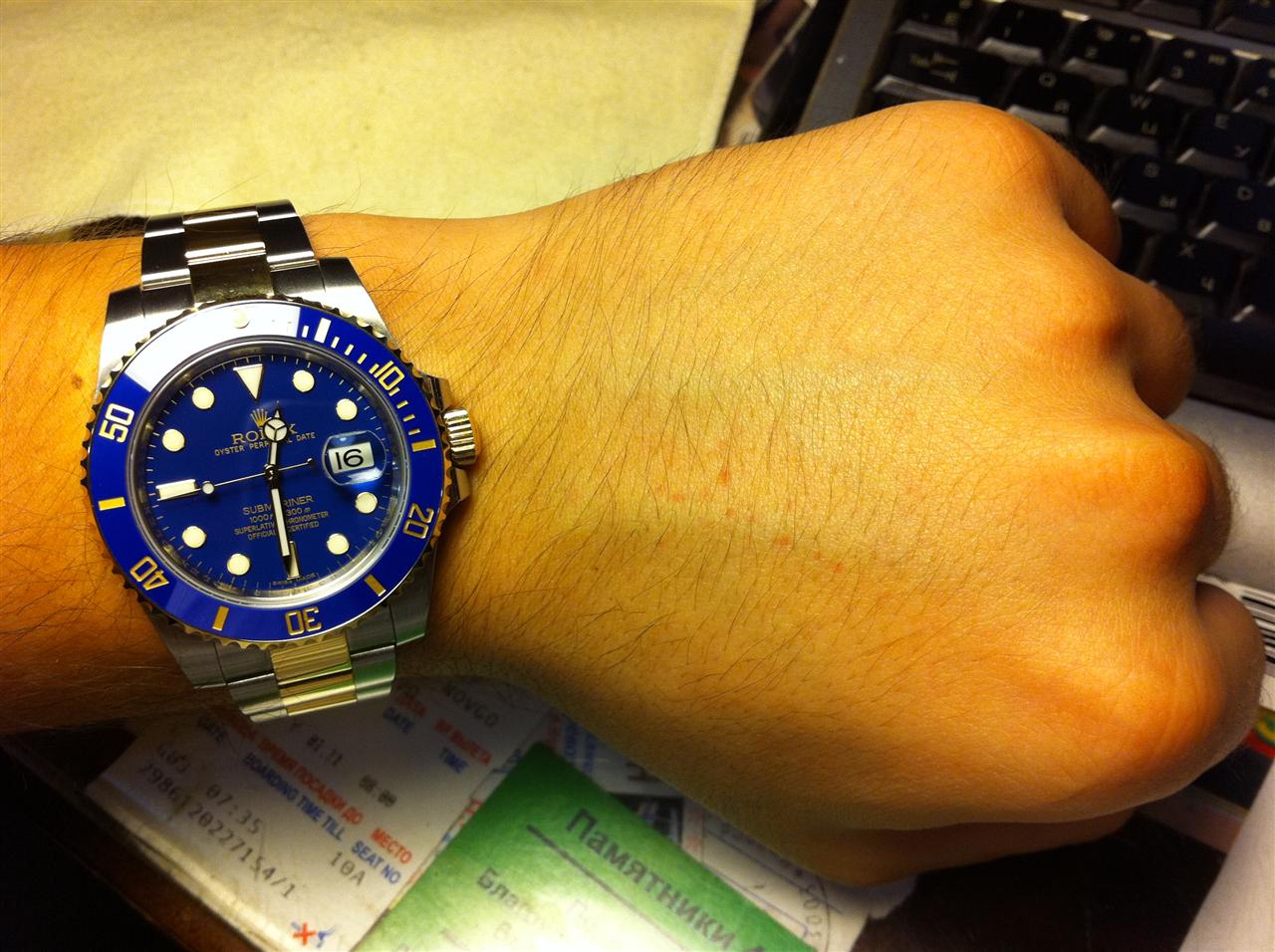 Как было обещано ранее, после получения долгожданного синего биколорного Субмаринера выкладываю его на 10 разных руках (10 разных людей).