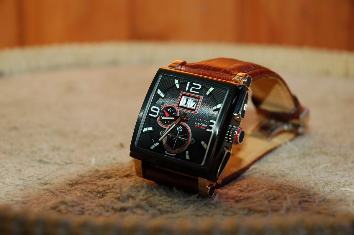 Добрый день! Предлагаются к продаже часы Citizen EcoDrive.Цена 13000руб. Часы новые,были одеты 1 раз. Покупал я их в западном интернет магазине. Комплект на фото,КОРОБОЧКИ НЕТ. К сожалению,оказались сильно велики на мое запястье. Поэтому вынужден продать их. Часы очень красивые,выгнутое сапфировое стекло с фиолетовым антибликом красиво играет на свету) Корпус полностью из нержавеющей стали,покрытие комбинированное черное-золотое ,тяжёлые. Циферблат чёрный,узорчатый Большая дата,отдельный 24 часовой циферблат,вынесенная секундная стрелка. Необычно широкий кожаный ремешок (25мм) Продаю часы по цене покупки,т.е. в два раза дешевле чем в они стоят в Москве)) СДЕЛАНЫ В ЯПОНИИ! 100% оригинал! На фото именно те часы,которые продаются. технические хар-ки: МЕХАНИЗМ - кварцевые ВОДОЗАЩИЩЕННОСТЬ - 100м КОРПУС - сталь СТЕКЛО - сапфир с антибликовым покрытием РЕМЕШОК - кожа РАЗМЕР ПО ВЕРТИКАЛИ - 38.0мм РАЗМЕР ПО ГОРИЗОНТАЛИ - 38.0мм ТОЛЩИНА - 13.5мм ECO-DRIVE (Солнечный элемент питания) - есть СРОК РАБОТЫ БАТАРЕЙКИ - аккумулятор Календарь - автоматический Вечный календарь до 2100 года - учет количества дней в каждом месяце и учет дней в високосных годах, владельцу часов не придется беспокоится о переводе календаря в конце месяца и года. Аккумулятор заряжается от солнечной панели, расположенной на циферблате, при полной зарядке аккумулятора, срок сохранения энергии 360 дней. Срок замены аккумулятора 8-10 лет. В левой части циферблата показания текущего времени в 24-х часовом формате. Секундная стрелка вынесена отдельно в нижную часть циферблата. На стрелках и ризках нанесен светонакопитель - в темноте светится. MADE IN JAPAN Цена по Москве -от 30000руб