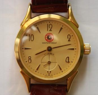 17 камней. на шестерне заводного барабана маркировка Roskopf. Корпус часов позолочен, секундная стрелка вынесена отдельно, уникальная нумерация циферблата - обозначены четные числа, задняя крышка и заводная головка имею маркировку Roskopf Patent. Механизм украшен по технологии гравировки Perlee