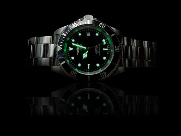Люминесцентные маркеры по точкам часов, на часовой, минутной и секундной стрелках – ночью часы очень легко читаемы и видно как бежит секундная стрелка.