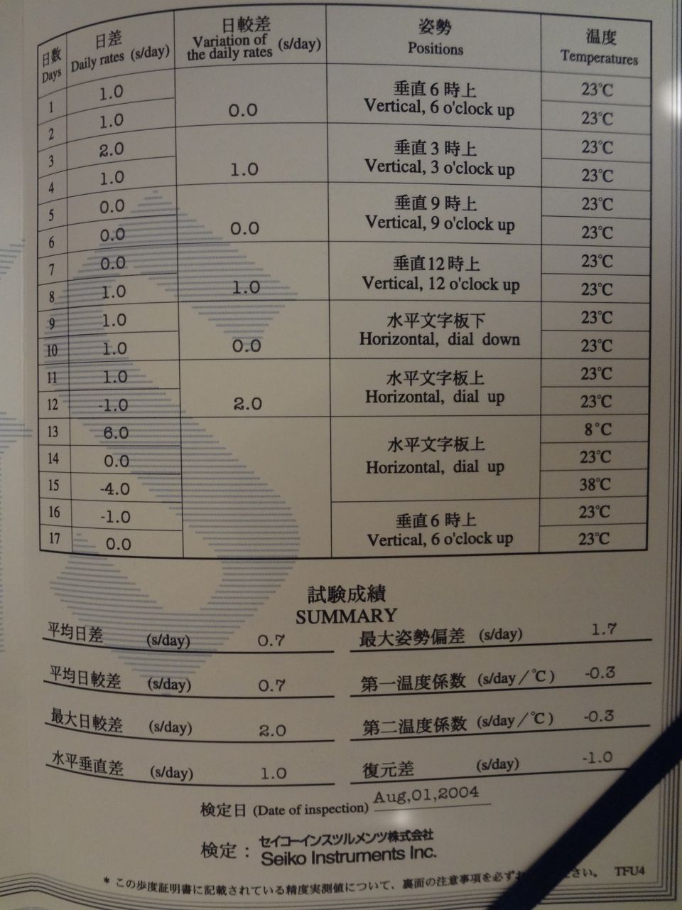 Привлёк недавно внимание на Гинзе похожий по качеству ГС, возможно на следующей неделе решу выкупить. Титан, 9S55, особый цифер, в отличном внешнем состоянии. Привожу фото сертификата, которое свидетельствует цифрами о феноменальном качестве исполнения. Все цифры отклонений за 12 дней ложатся в пределах от 0 до +2 . Это как особый экземпляр ВФА. Этот экземпляр может ходить как кварц выдавая на руке 10 сек отклонение за 180 дней.....