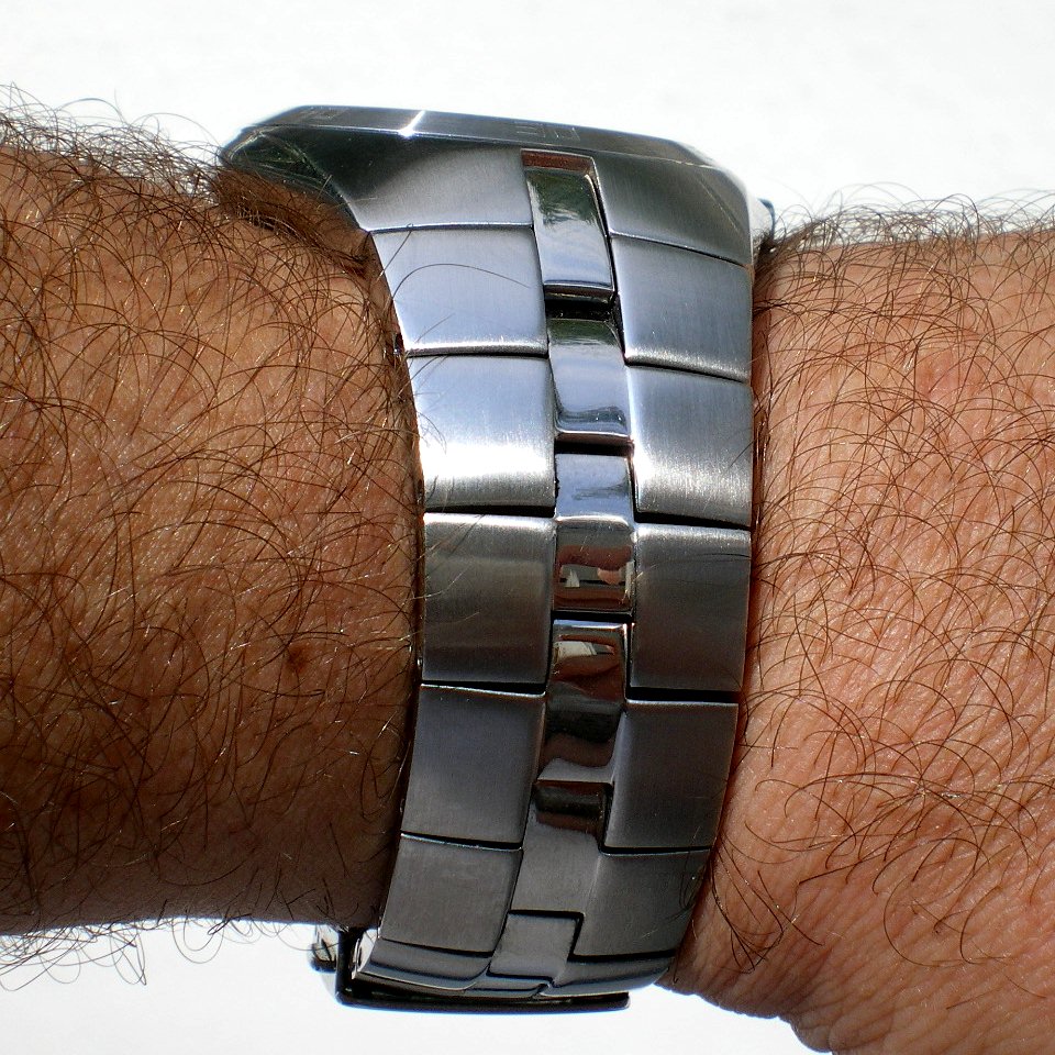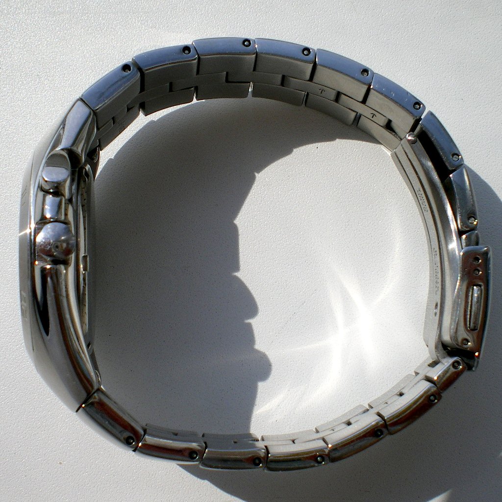 Данным часам несколько лет от роду. Первый хозяин поносил их несколько дней и часы показались ему слишком тяжелыми. Он положил часы в коробку и забыл про них. В результате сохранились часы прекрасно, даже не запылились, но вот аккумулятор за несколько лет бездействия подсел. Мне, за неделю ежедневного ношения часов по несколько часов, удалось зарядить аккумулятор до второго уровня (из четырех), который, согласно руководству пользователя, обеспечивает запас хода от недели до месяца. Положенные назад в коробку, часы действительно шли в течение двух недель без дополнительной подзарядки. При этом они не только не остановились, но даже не перешли в режим экономии энергии (когда секундная стрелка движется скачками через деление). Другими словами, аккумулятор хорошо держит заряд и еще способен разработаться практически до исходного состояния. Впрочем, если есть желание, то не проблема поставить в часы новый аккумулятор и забыть про него лет на двадцать. Цена вопроса - 1200 рублей. Столько берут за аккумулятор и операцию по его установке часовщики Воронежа.