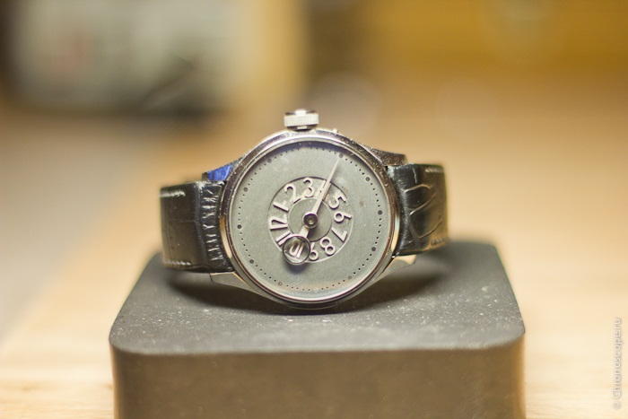 Внутри – механизм с функцией хронографа, изготовленный из старого советского калибра ЧК-6, разработанного усилиями исключительно советских инженеров. Аббревиатура ЧК – расшифровывается как «часы карманные», никакой связи с чекистами нет.