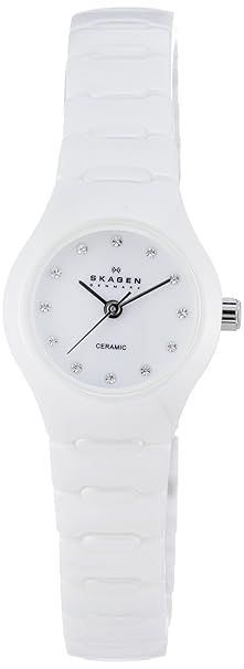 на Амазоне в разделе Часы в левом меню повключайте фильтры: женские, белый браслет, керамика (или пластик) и посмотрите, что он там навыдаёт.
