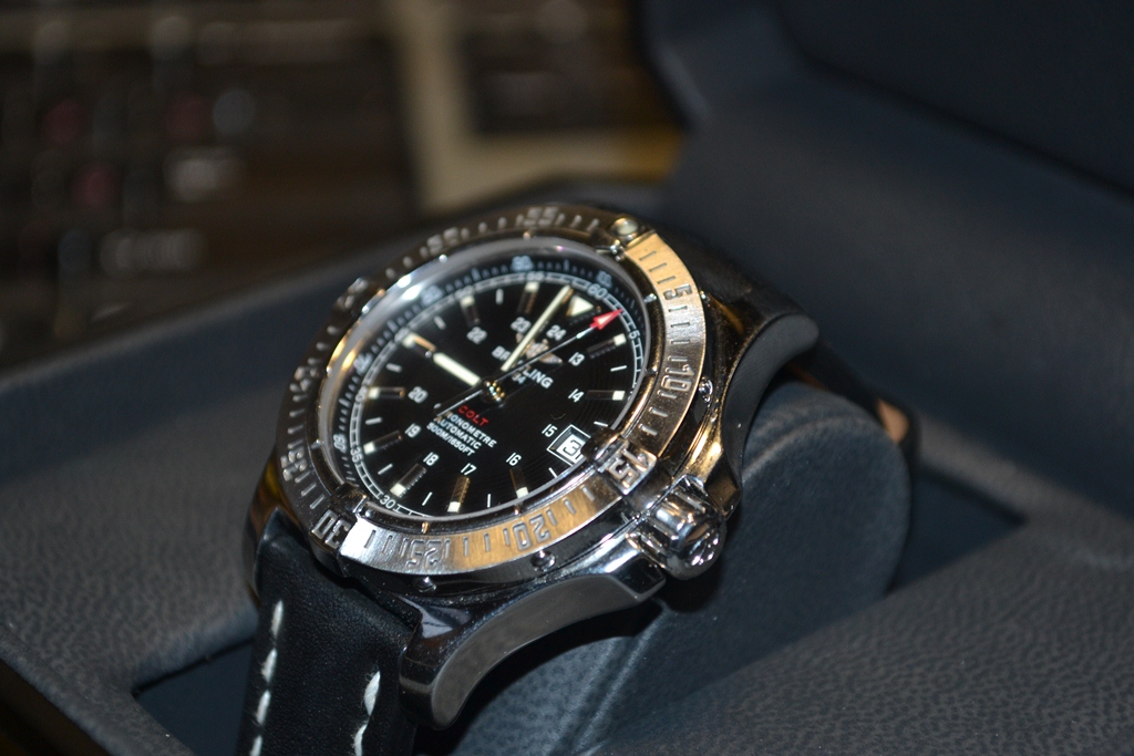 Открыл, и все тревоги развеялись: красный треугольник на секундной стрелке - на месте; якорь со стилизованной «В» - на месте; сертификат хронометра – на месте. Сомнений быть не может – Breitling Colt собственной персоной. На часах ни одной царапины. Циферблат благородного темно-шоколадного цвета – фото, к сожелению не передает всей красоты и безупречности цветовых сочетаний. И при этом внешнем великолепии они еще и идут - автоподзавод сработал оперативно