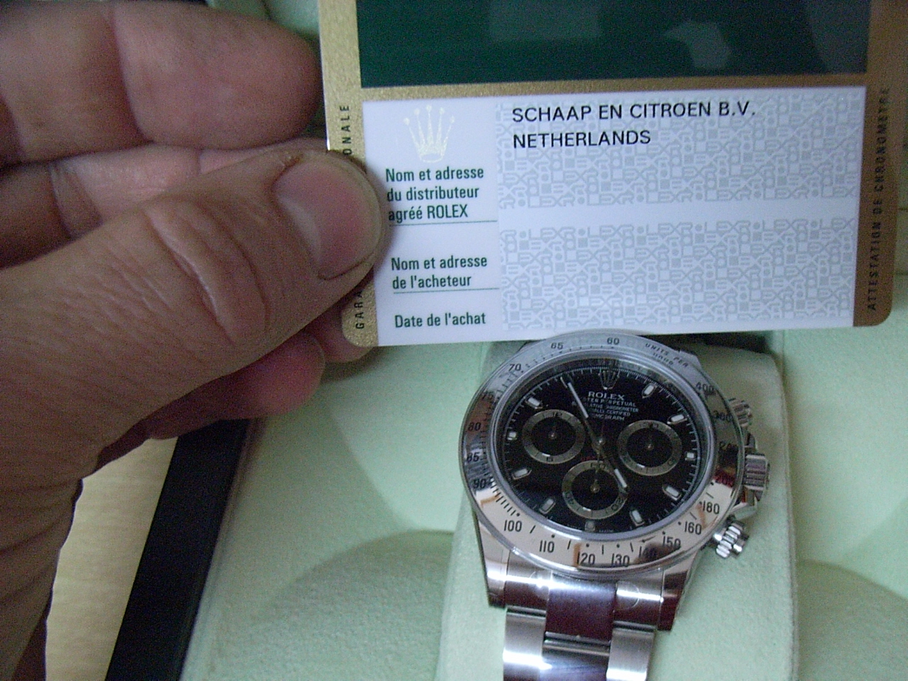 Полным комплектом документов, оригинальная коробка Rolex. Часы были приобретены у официального дилера Rolex в 7/2012 году.