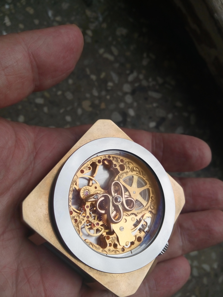 Да, я тоже думаю о стиле "аля Панерай". Сам корпус из бериллиевой бронзы, а центральная вставка и задняя крышка из 316L стали, поэтому баклю можно как стальную, так и бронзовую, правда цвет последней будет трудно подобрать, т.к. такую бронзу достаточно тяжело найти.