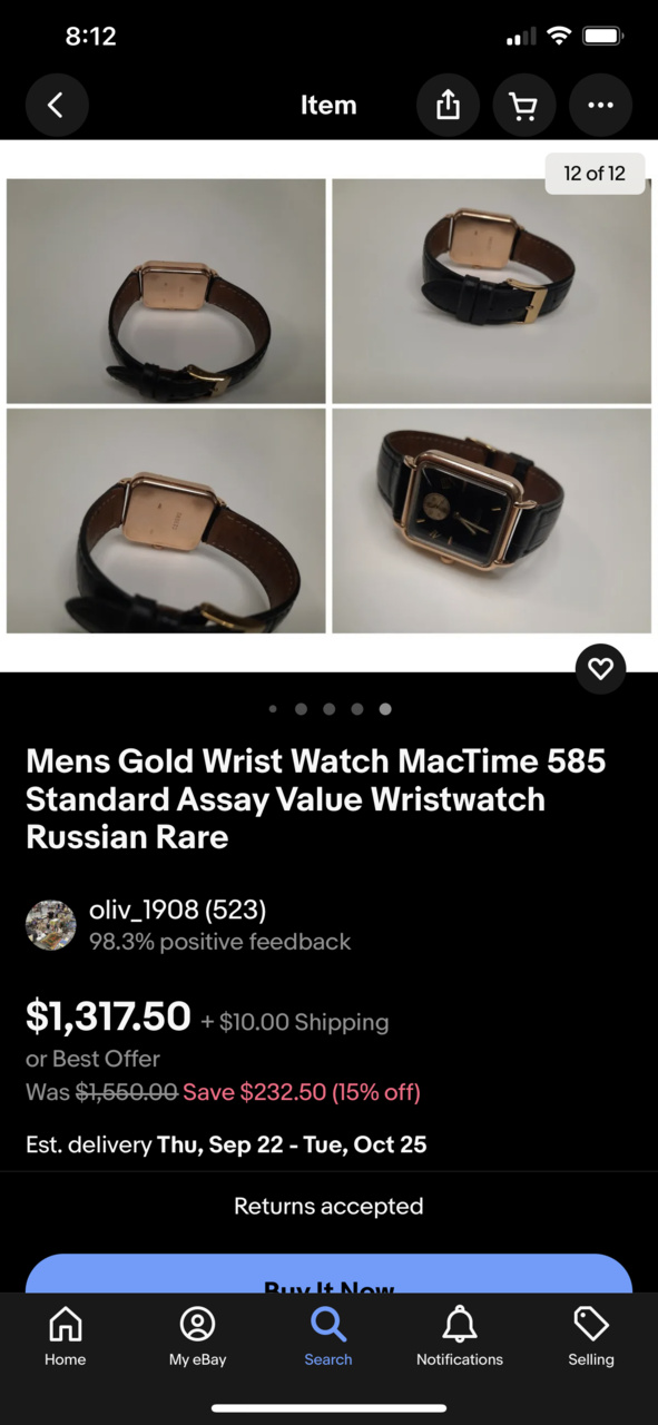 Золотые мужские часы Мактайм