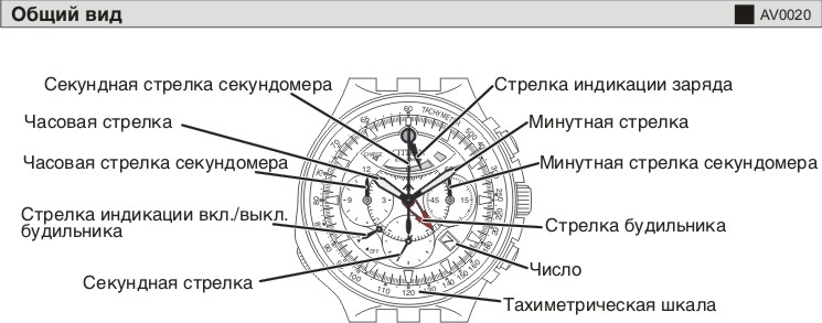 • Ежедневный будильник длительностью 20 секунд (красная стрелка, удобно управляемая специальной отдельной головкой, которая находится в положении 8 часов).
