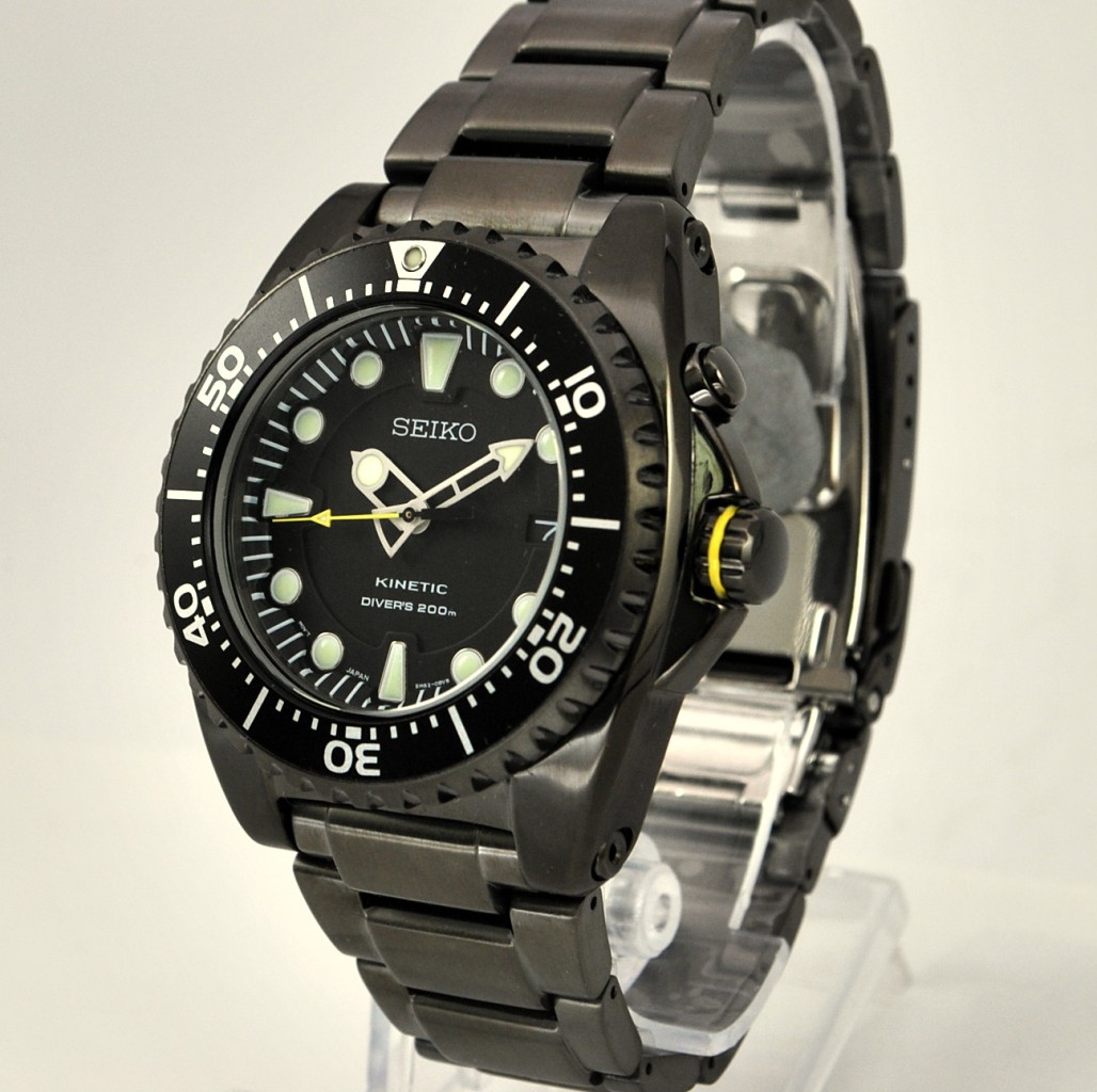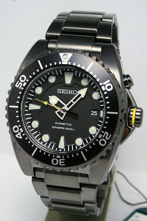 - Дополнительные функции: автоматическая генераторная система Seiko Kinetic, вращающийся в одну сторону безель