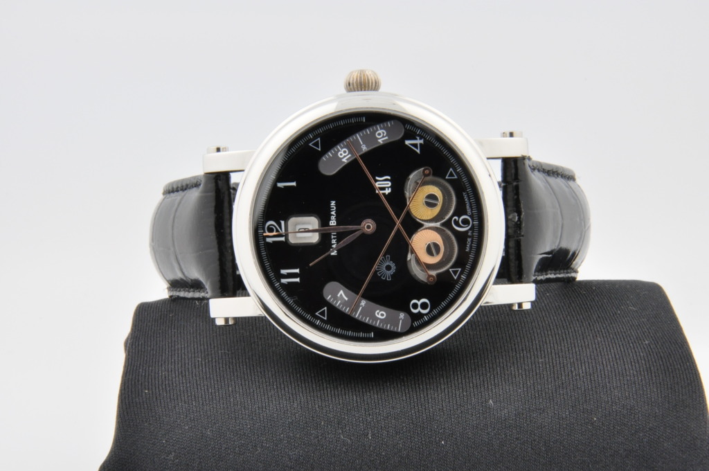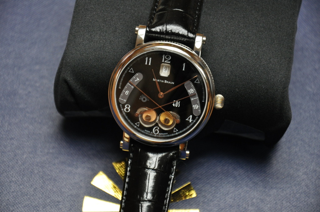 MARTIN BRAUN EOS 42 сталь черный циферблат, практически НОВЫЕ ОЧЕНЬ КРАСИВЫЕ ЧАСЫ