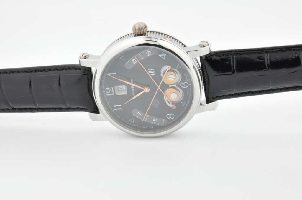 Продаю MARTIN BRAUN EOS 42 мм. Сталь, Черный циферблат с новым черным крокодиловым ремешком, с бабочкой и обычной застежкой.