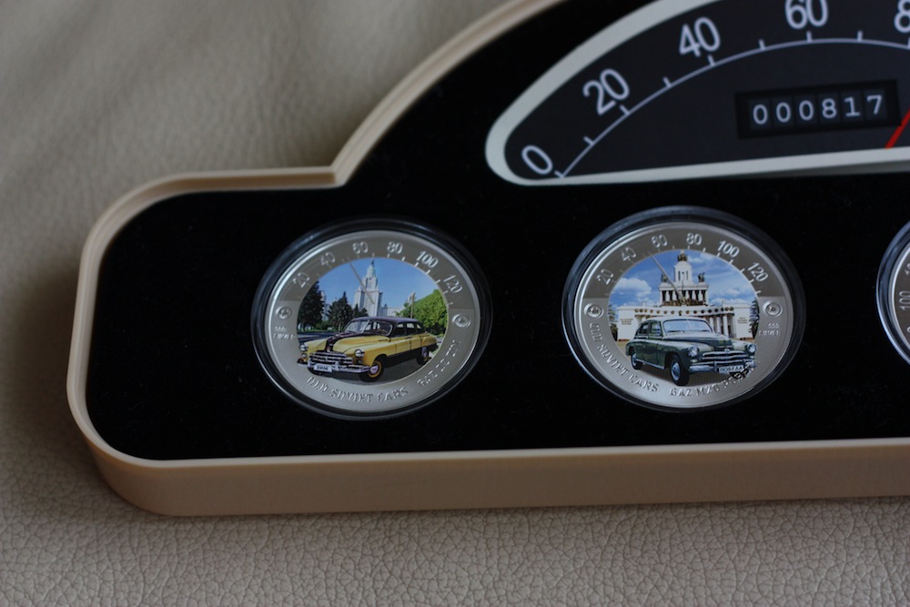 Набор из 4 серебреных монет серии «OLD SOVIET CARS»