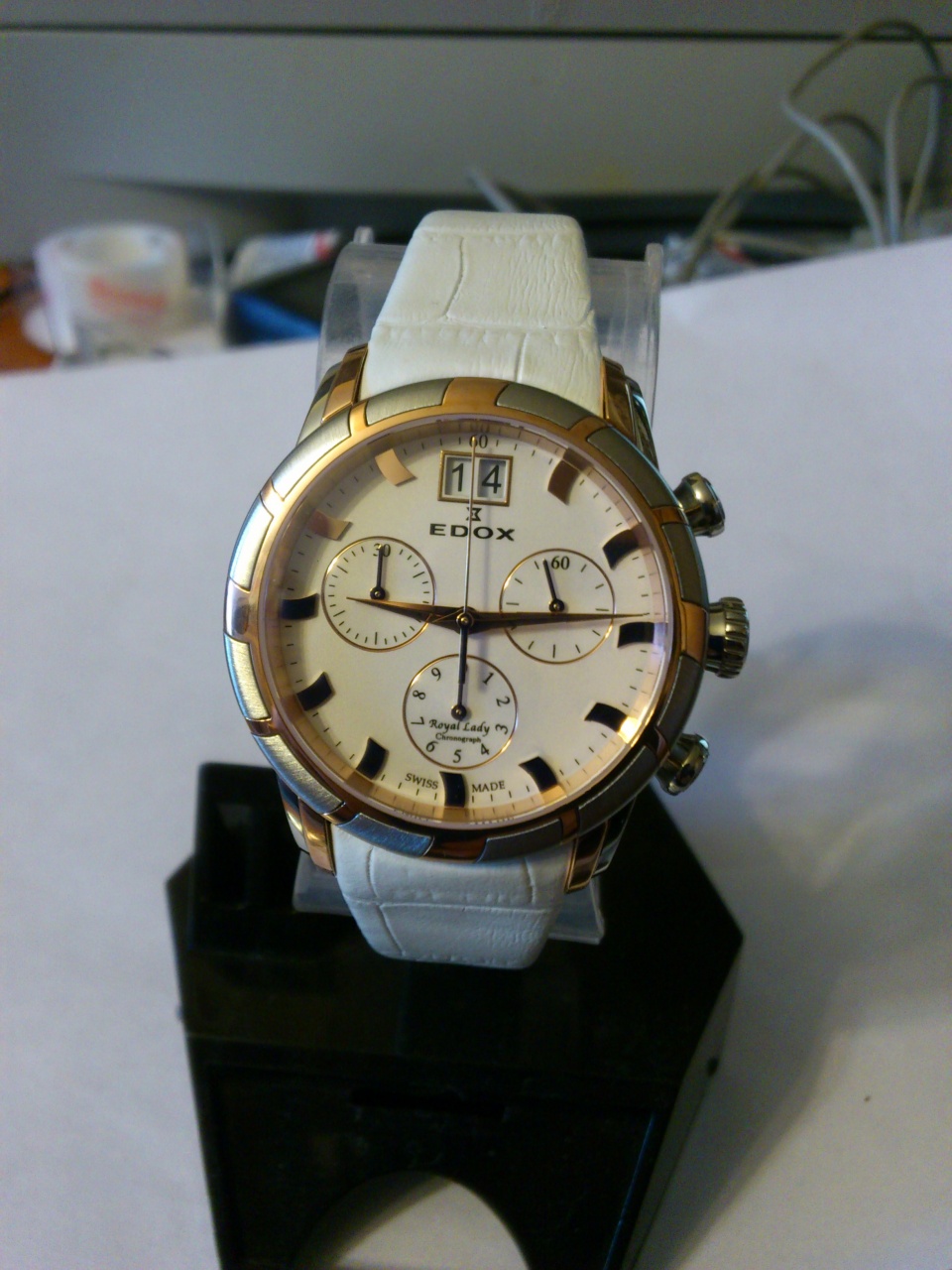Edox Royal Lady женский хронограф, белый кожаный ремень