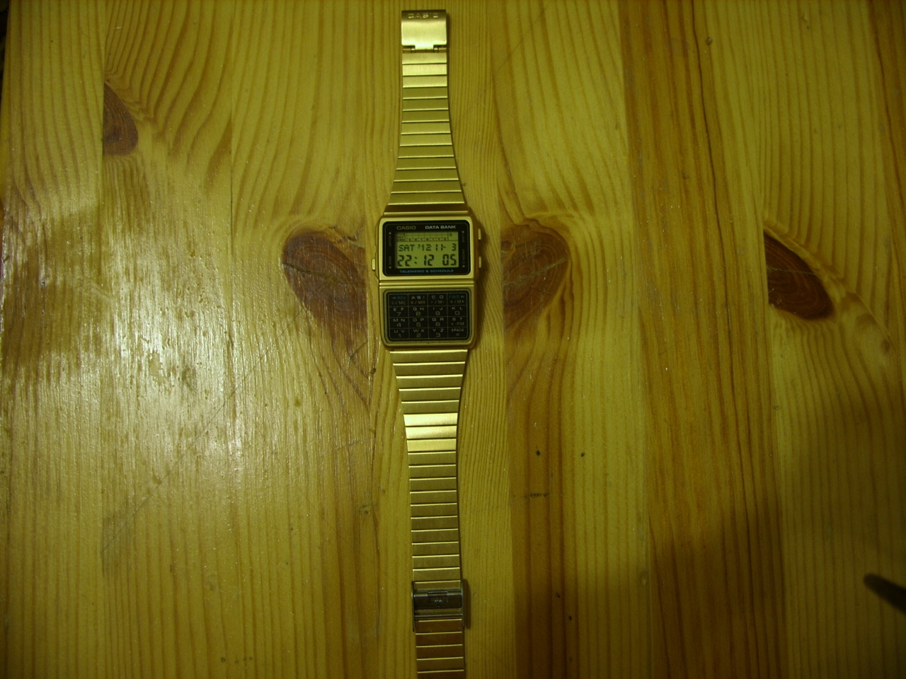 Уважаемые форумчане представляю вашему вниманию Casio DBC-610 серии Data Bank. Долго определялся с выбором часов. Сначала свой взгляд останавливал на шоках серии 6900, показались массивными. Затем смотрел в сторону минишоков той же 69 серии - не устроила цена. Так же дорогими показались белые GWM 850. И однажды на ибее наткнулся на представляемые мной DBC-610. Выбор в датабанковской серии большой начиная с простых DB -200 и заканчивая, как мне показалось ,самой продвинутой моделью DBC-610. Определенную роль в выборе именно этой модели сыграло наличие таких же(кмк) часов у Андрея Малахова. Так же дала о себе знать ностальгия по 80-м годам прошлого века. И недолго раздумывая я обратился за помощью купить мне эти часики к небезизвестному и уважаемого мной JediNewTime. Заказ был сделан 13 октября и спустя 18 дней , т.е. 1 ноября, я получил на почте мелкий пакет из Гонконга. Это был обыкновенный конверт, содержимым которого было две вещи : часы и нерусифицированная "камасутра". В пластиковй корпус часов вживлен 676 модуль. Браслет нерж. лицевая сторона покрыта "золотом" , внутренняя без покрытия. Застежка позволяет быстро ориентировать браслет практически на любое запястье. Это удобно. Функционал модуля позволяет: читать время, дату,год,день недели ; записывать данные в режиме записной книжки ; имеется режим расписания до 50 записей ; производить математические действия ; определять время в 24 городах мира ; устанавливать одинарный ежедневный будильник ; таймер countdown до 24 ч. ; секундомер с дискретностью в сотые доли сек. Так же присутствует традиционный ежечасный двойной бип. Что еще можно сказать? Кнопки клавиатуры и боковые "легкие" в нажатии, не как на mudman. Браслет красиво переливается звеньями при освещении и волосы на руке пока не щиплет. Подсветка зеленым диодом, достаточно, что бы прочесть что либо в темноте. Из минусов считаю отсутствие влагозащиты, пластиковый корпус (металл было бы лучше), не громкий сигнал, не знаю на сколько хватит "золотого" покрытия. Остальное, при аккуратном ношении, не критично. На мой взгляд - эффектные часы и мне очень понравились. Доволен, как слоник.