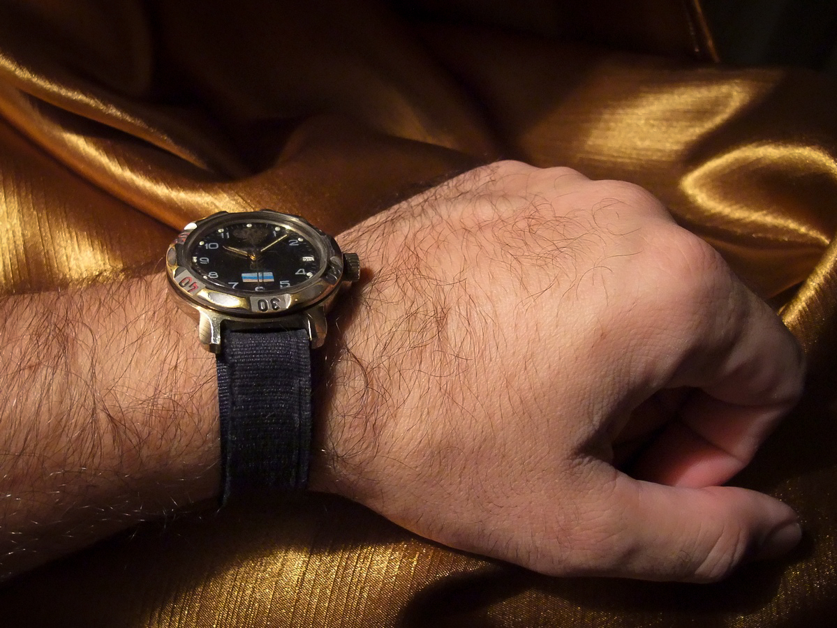 Затем были "Командирские". Прослужили они верой и правдой лет 10 (которые были для них довольно интенсивными и непростыми). Хотя согласно инструкции проходили обслуживание в часовой мастерской без поломок к сожалению не обошлось. Какое-то время они лежали без дела, а сейчас вновь используются, но исключительно для подводных погружений (поэтому такой страшный ремешок, см. фото).