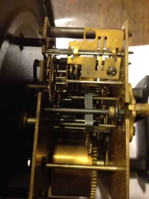 Жена съездила навестить родных в Россию. Там бабушка ей подарила эти часы. В багаже им места не хватило, поэтому брат жены часы разобрал, коробку, в которой все крепилось, выкинул, упаковал механизм, циферблат, стекло, маятник и переднюю панель/дверцу в коробку, и в таком виде засунул в чемодан. К моему большому удивлению, все доехало в целости и сохранности, и теперь мне, как "домашнему мастеру на все руки", дано "партийное поручение" собрать, "чтоб как было"!!!