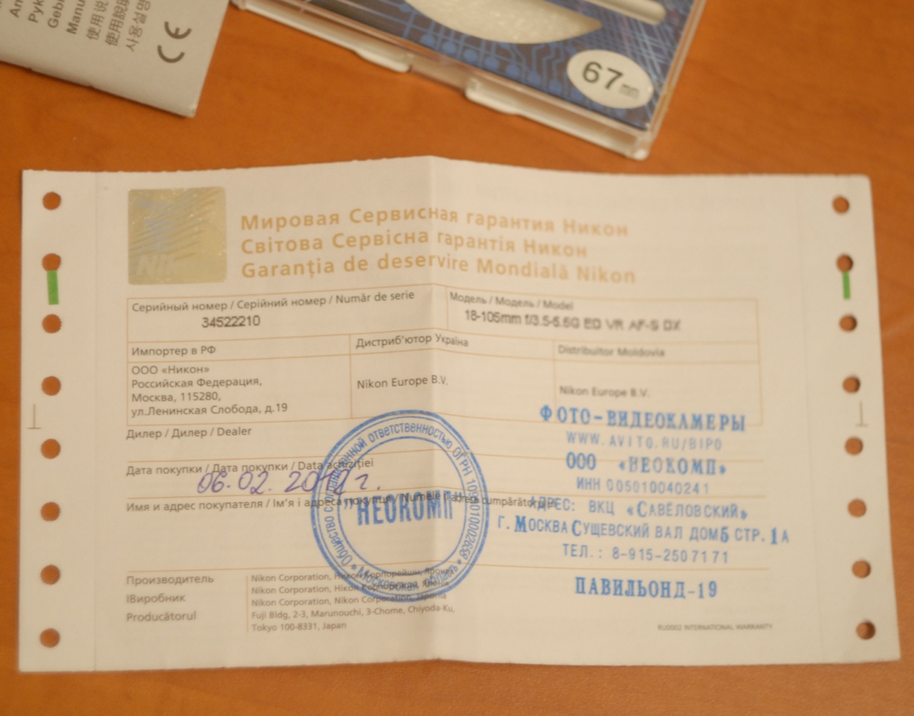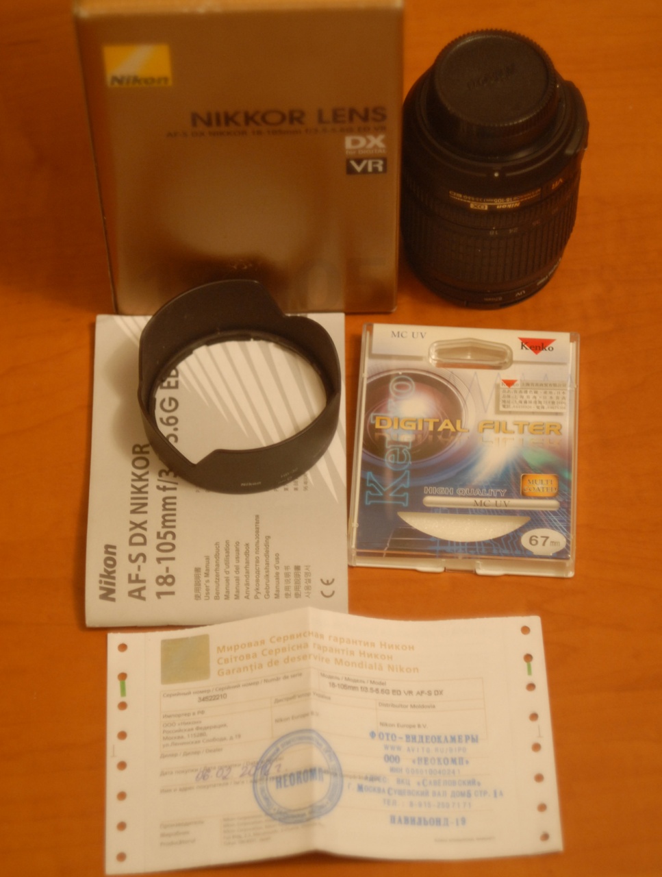 Объектив для Nikon 18-105mm VR + бленда + фильтр