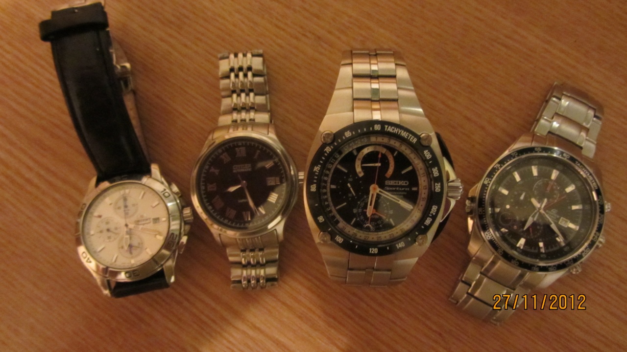 Japan: Seiko Sumo Chronograph / Citizen Nighthawk Radio Controlled / Seiko Sportura Chronograph Swiss: Hamilton Khaki Air Race Chronograph / Victorinox Ambassador Automatic ![]() |