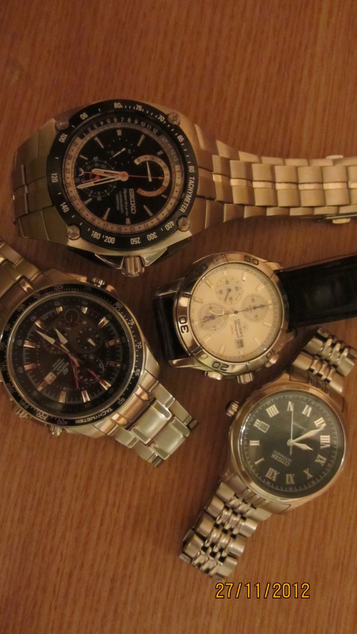 Japan: Seiko Sumo Chronograph / Citizen Nighthawk Radio Controlled / Seiko Sportura Chronograph Swiss: Hamilton Khaki Air Race Chronograph / Victorinox Ambassador Automatic